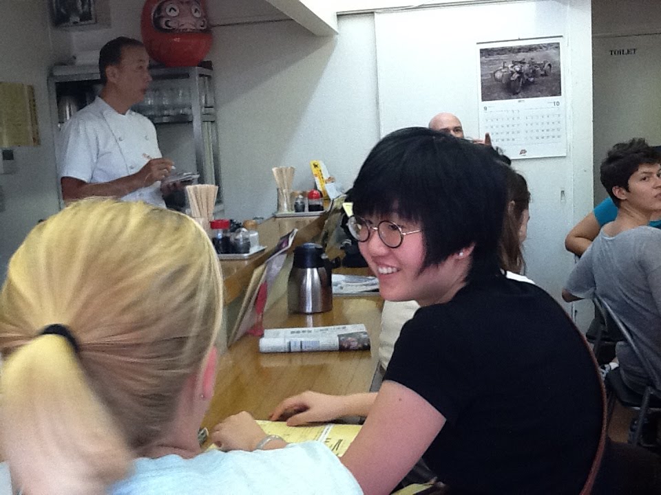 Eriko and I went through all the rows shops. I bought Shitaki mushroom tea, but didn’t have enough courage to get the seaweed one. We then went to the portion of the market where fish was sold. The fish auction takes place early in the morning, so we only saw the aftermath. There was still some smaller fish being sold. Tiny electrical trucks stealthily zoomed back and forth carrying water, tubs, and tools. One could easily get run over without being careful. The floor was wet. So were most of the counters and surfaces. Men in rubber aprons and gloves were out and about wiping, cleaning, drawing rickshaw-like carts. It was dark. The ancient roof of the market did not allow any sunlight to pass. It is sad to know that old fish market will soon be shut down and moved to a new place. However, once upon a time Tsukiji was also a new establishment. I am excited to see the new fish market that will take Tsukiji’s place